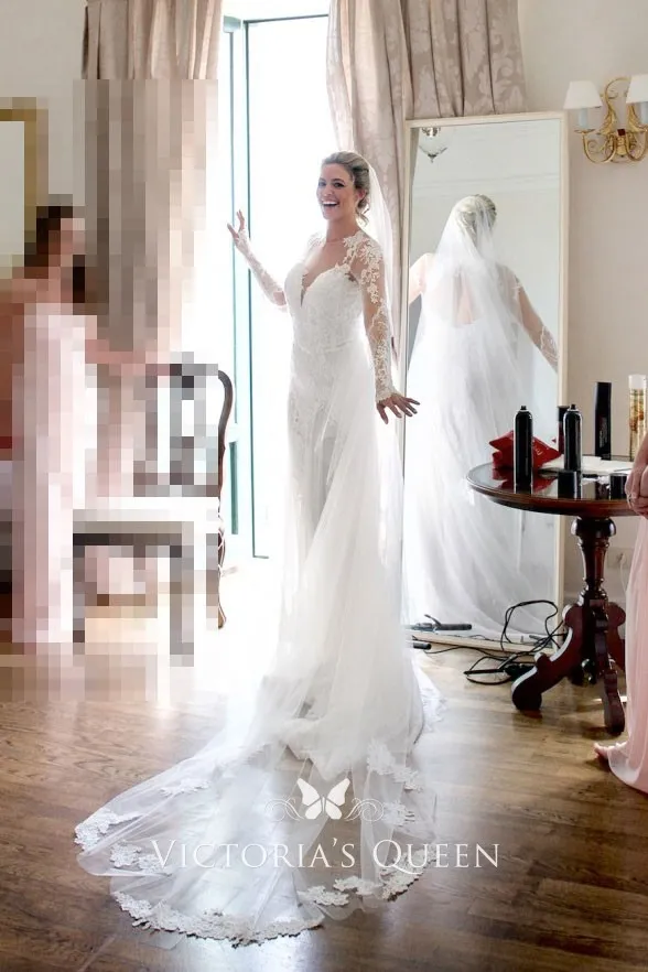 Deep V Neck Long Sleeve Lace Wedding Dress : Deep V Long Sleeve Wedding Dress Inspiration Kiko Riaze Wedding - Wedding dresses bridal gowns v neck a line full laced long sleeve train custom.. How long does it take for the refund to be processed? Shop with afterpay on eligible items. The beauty is in the details of this long sleeve lace and tulle mermaid dress. Get the best deals on lace long sleeve wedding dresses. Please refer to size chart.